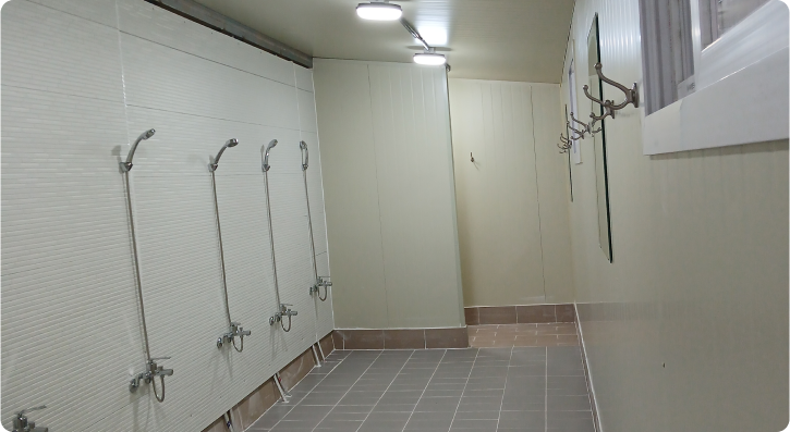 화장실, 샤워실, 개수대(개수대에서 따뜻한 물이 나오고 개수대 맞은편에 전자렌지 구비되어 있음.)