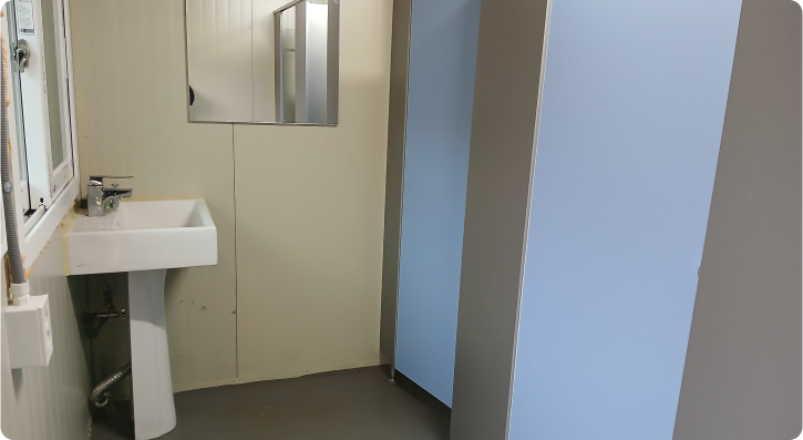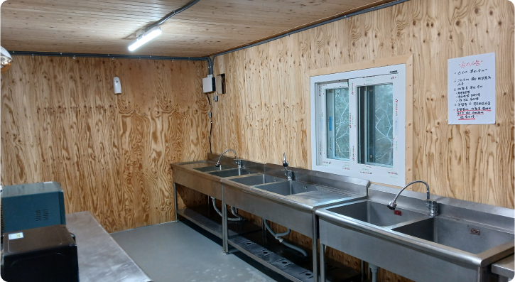 화장실, 샤워실, 개수대(개수대에서 따뜻한 물이 나오고 개수대 맞은편에 전자렌지 구비되어 있음.)