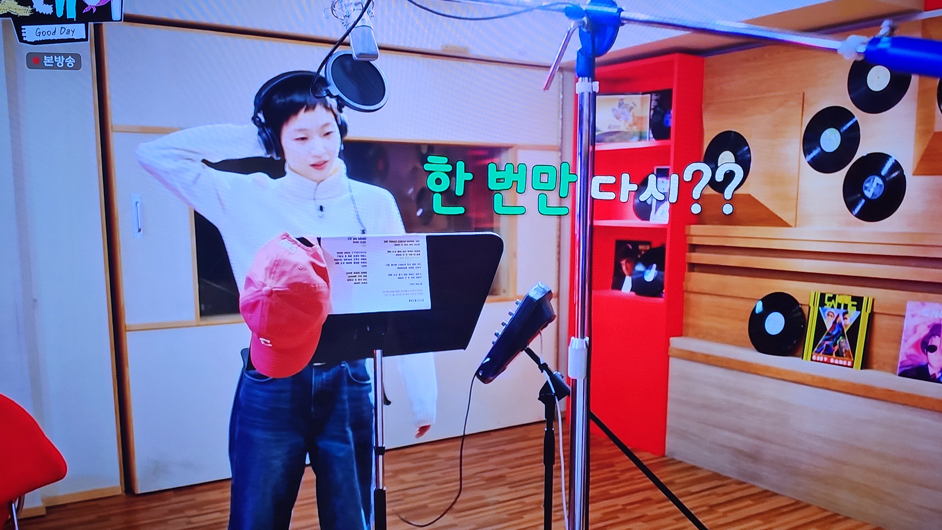 오늘은 녹음할 때 김고은이 쓴 핑크색 모자에 눈길이 많이 갔는데요.
