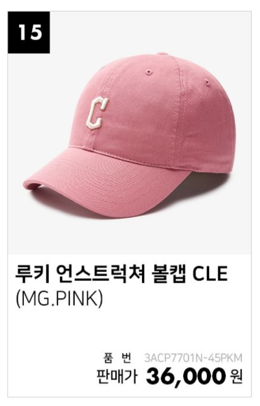 MLB 루키 언스트럭쳐 볼캡 CLE(MG.PINK)입니다.