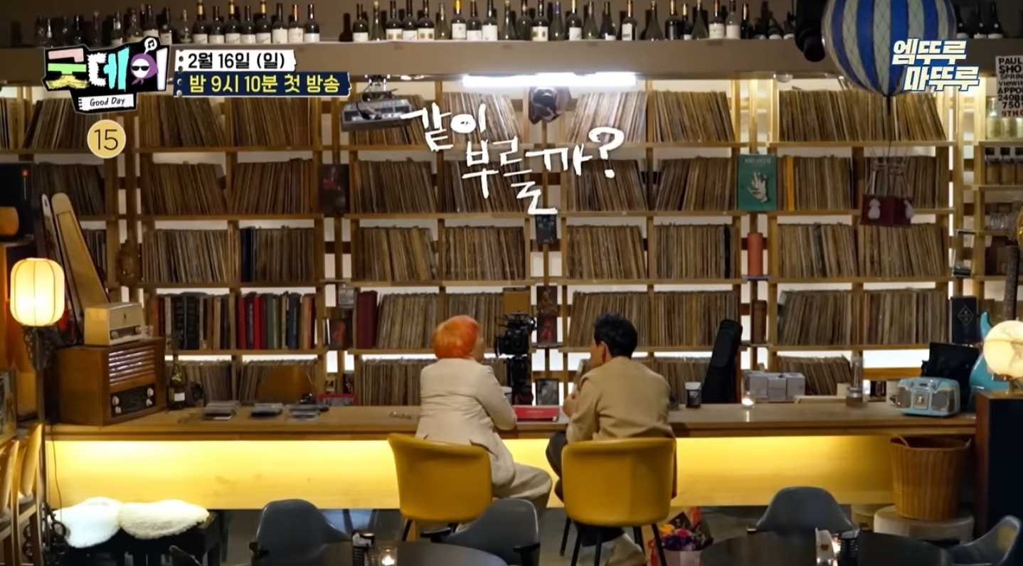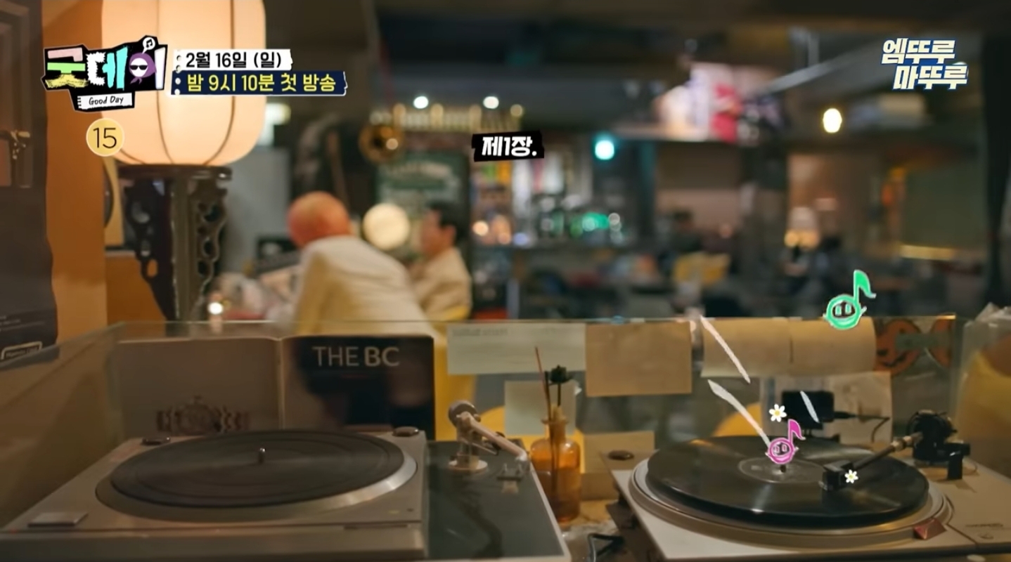 두 사람이 만난 장소는 한 면에 빼곡히 가득 찬 LP판이 인상적인 공간이었는데요.