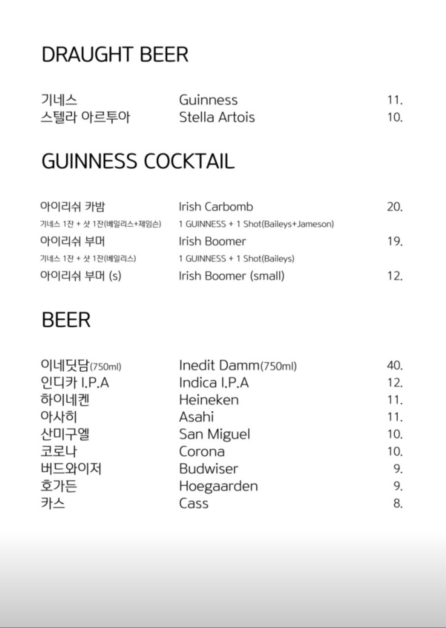 부담스럽지 않은 가격이라 칵테일 한 잔 때리면서 음악 듣고 오면 일에 지쳐 메마른 우리의 감성을 살포시 적실 수 있을 것 같습니다!