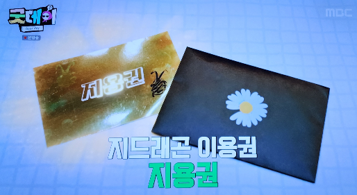 지디의 애장품은 지디가 직접 만든 '지디 이용권' = '지용권'이었습니다. 어떤 부탁이든 한 번 들어주는 거였는데요. 홍진경이 간절한 마음으로 1000만 원을 적어서 웃음을 유발했습니다.