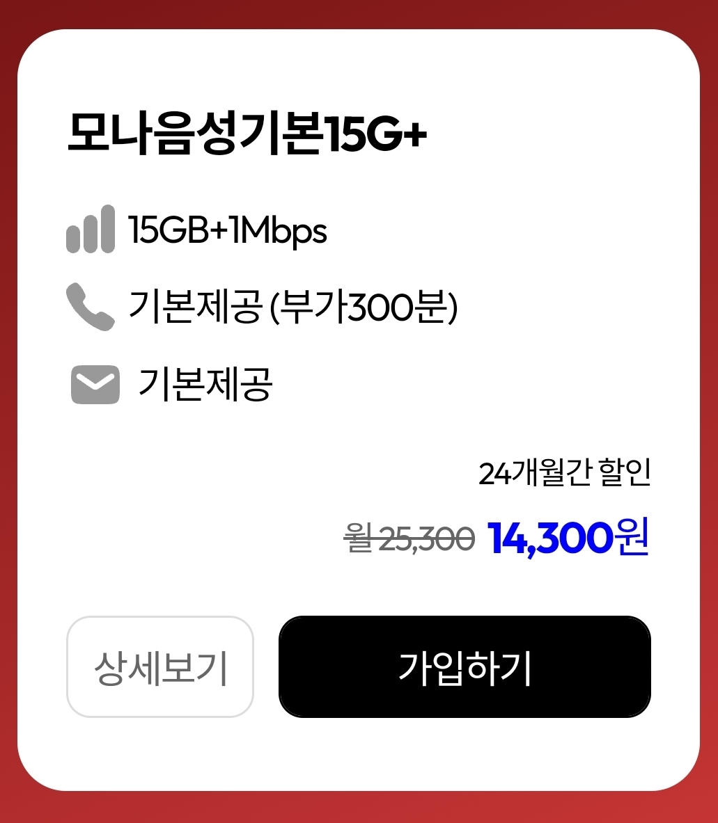 14,300원 요금제는 24개월간 할인되는 가격이니 참고하세요!
