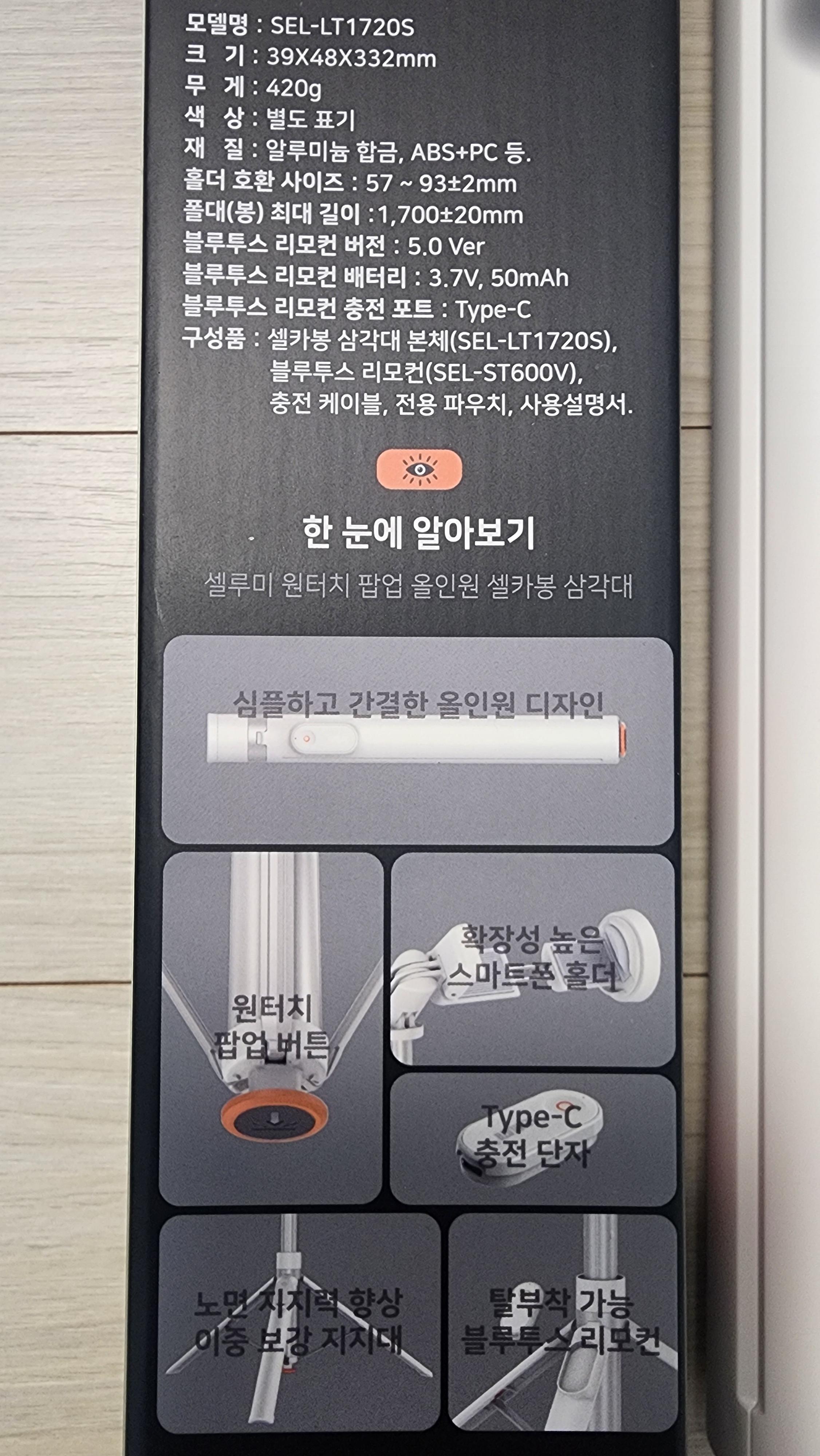 그래서 저한테 가장 적합한 셀카봉을 고민하다가 비교적 최근에 출시된 LT1720S 셀카봉 삼각대를 구입했습니다!