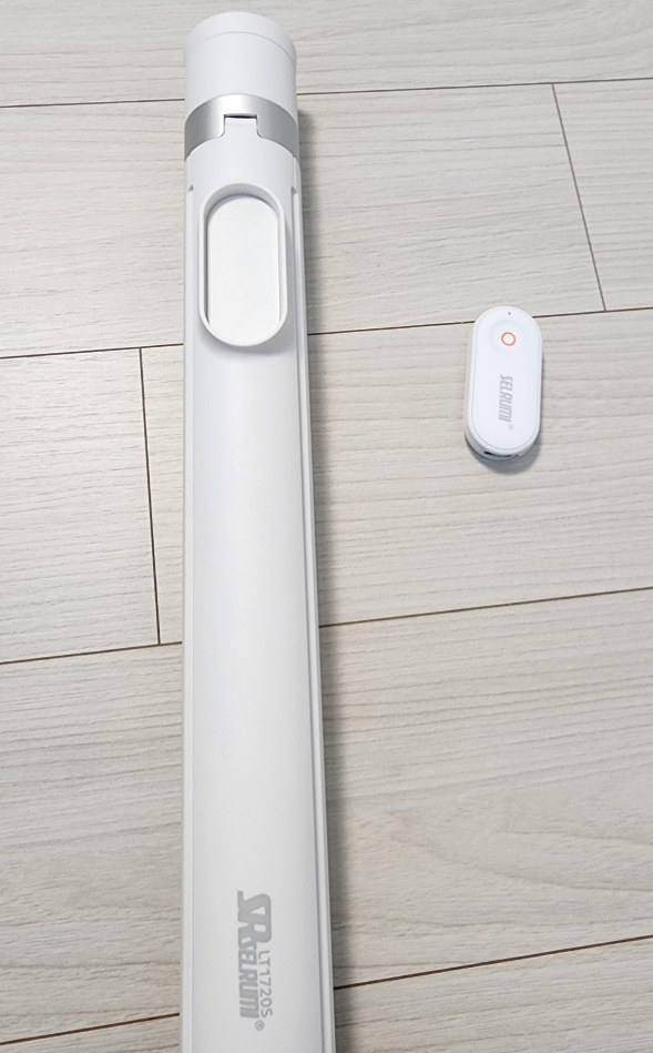 제품 자체에 블루투스 리모컨이 장착되어 있어서 장착한 상태로 셀카봉으로 쓸 수 도 있고, 리모컨을 떼어 내면 원거리에서도 원활한 촬영이 가능합니다.