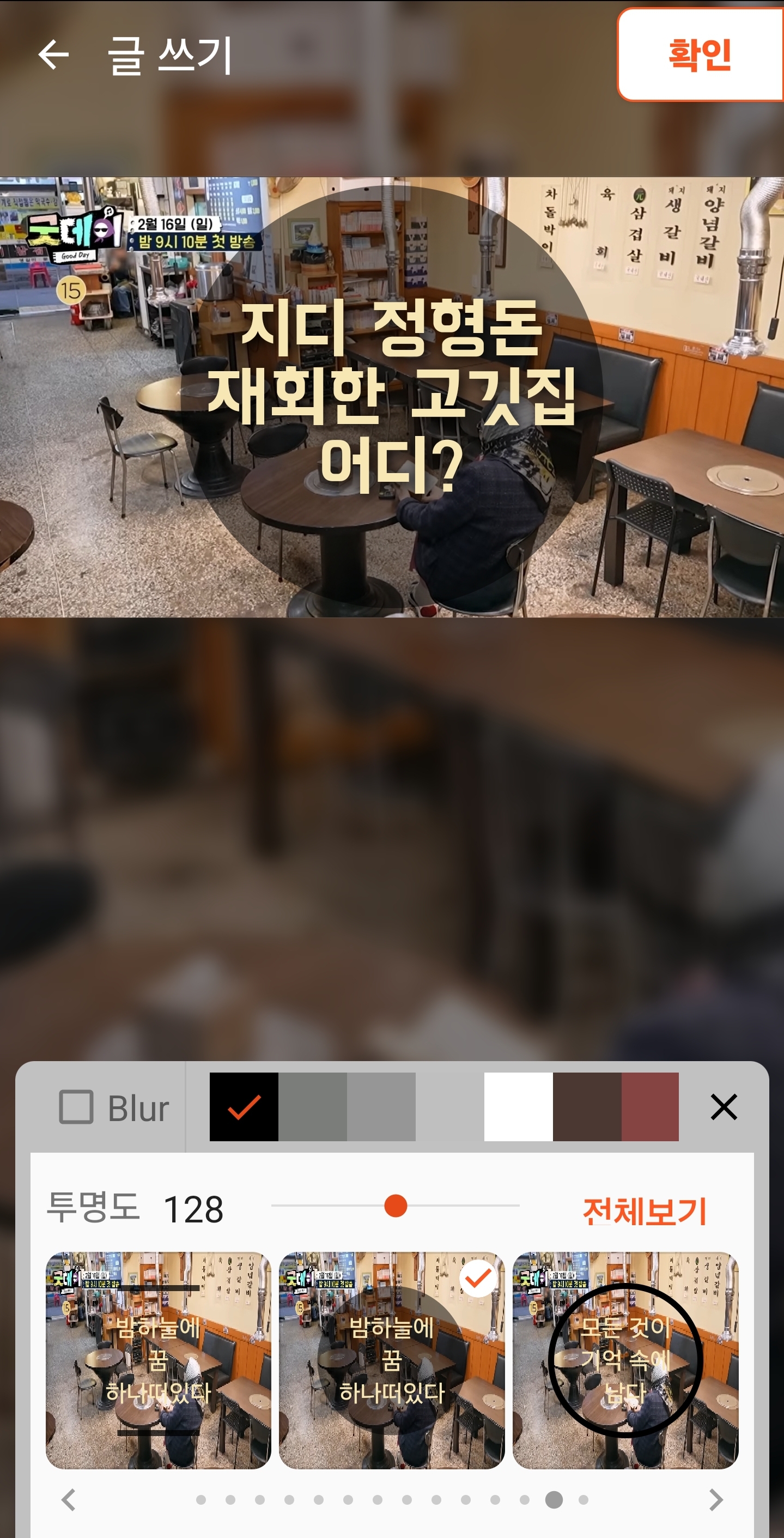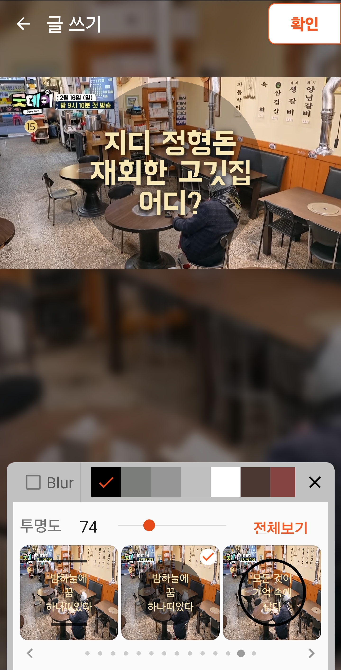 저는 중앙에 어두운 원이 있는 스타일을 골라보겠습니다. 많이 보던 스타일이죠?? 문구를 강조하기도 하고 1:1 비율로 바뀌더라도 어떻게 보일지 짐작 가능해서 좋더라고요.