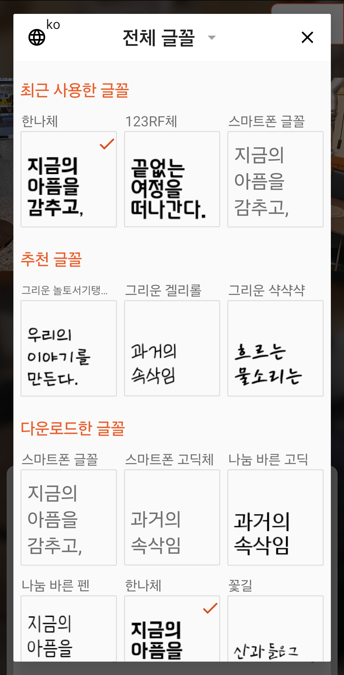 저는 이전에도 썼던 한나체를 골랐습니다.