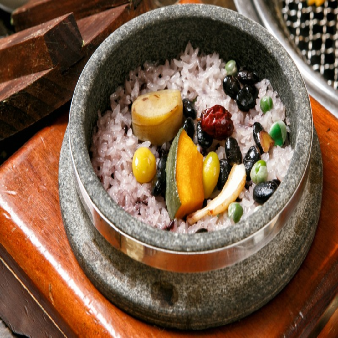 다섯 가지 곡물로 만든 밥을 먹으며 풍요를 기원합니다.
