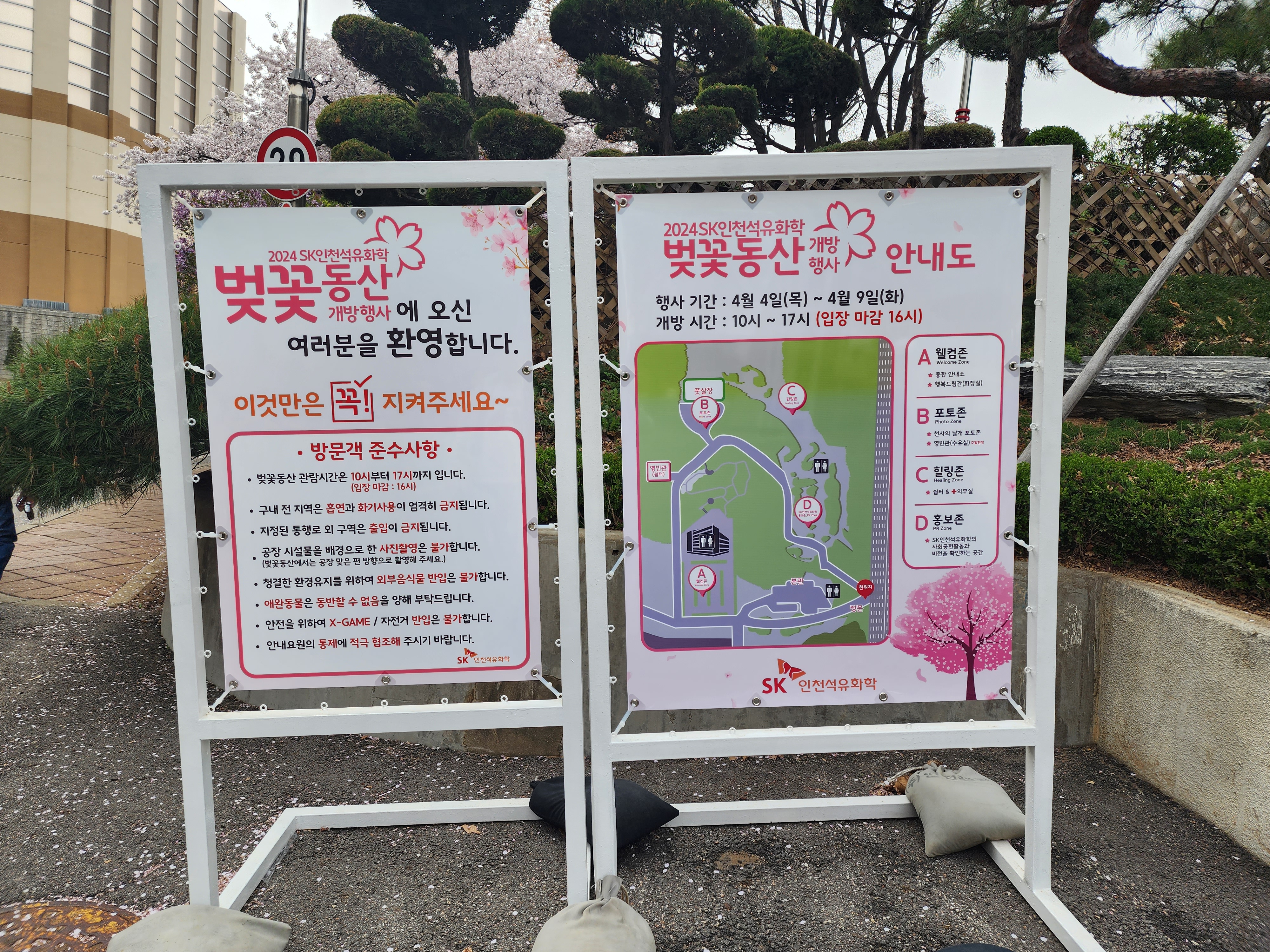 인천의 숨은 벚꽃 명소 중에 하나인 SK석유화학 벚꽃동산 개방 일정이 나왔습니다~