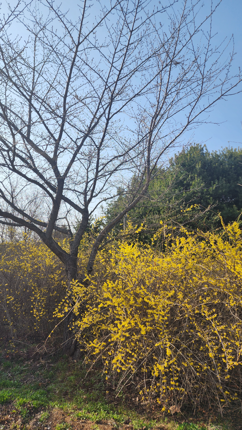 볕이 좋은 곳에는 개나리가 활짝 폈더라고요~ 활짝 피지 않는 개나리도 보였어요.